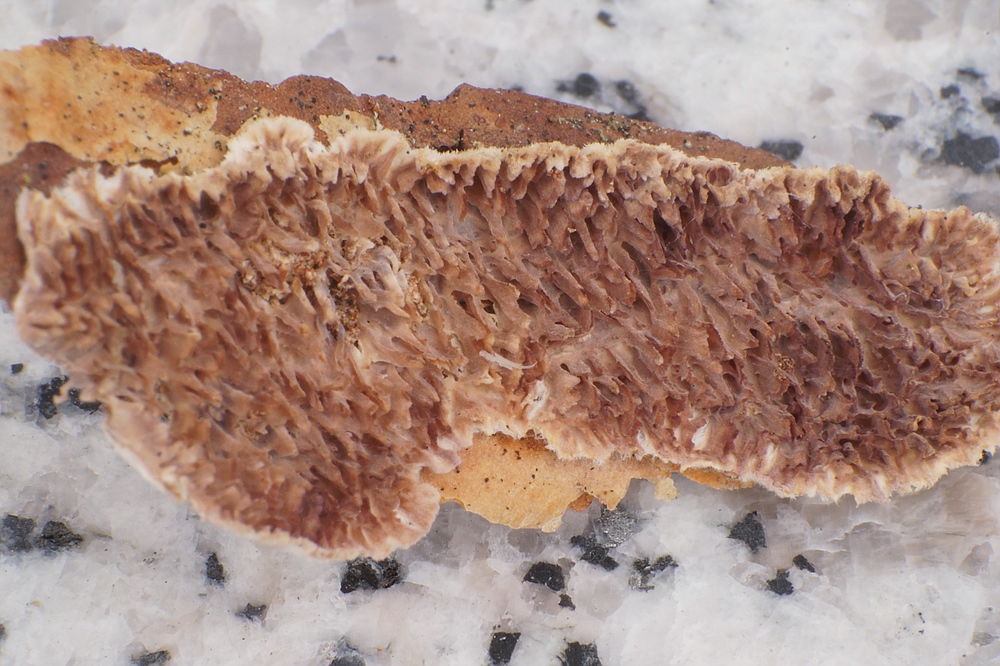 [font="sans-serif"]9. An Weide fanden wir den Ockerrötlichen Resupinatstacheling, Steccherinum ochraceum [/font]