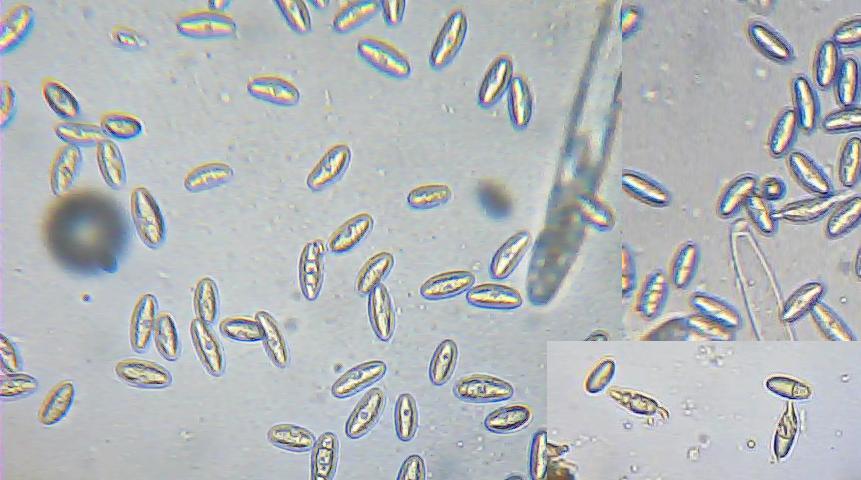 Darum doch noch ein Mikrobild von 2014, wp man auch septierte und keimende Sporen schwach erkennen kann: