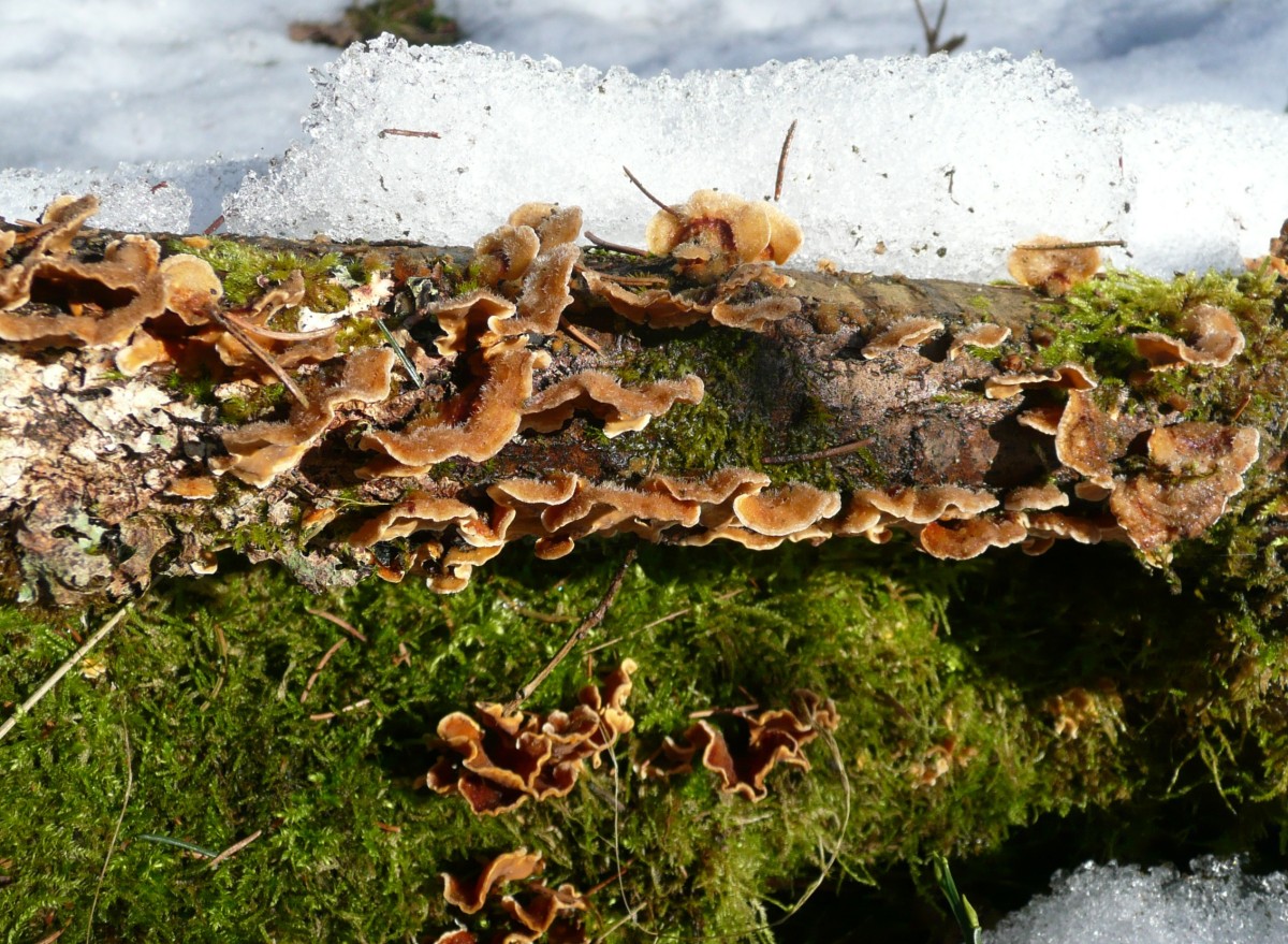 Auf jeden Fall ein schönes Beispiel, wie durcheinander der haarige Wirrpelz von Stereum hirsutum (Striegeliger Schichtpilz) ist.