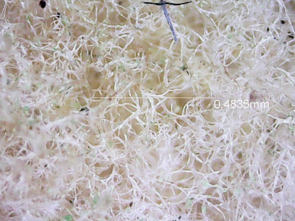 Also ich habe das bisher als samtig bezeichnet, wobei man strukturmäßig vielleicht jetzt auch einwenden könnte, dass es im Prinzip vom Aufbau her das gleiche ist wie bei der Striegeligen Tramete, aber eben bloß sehr viel feiner.