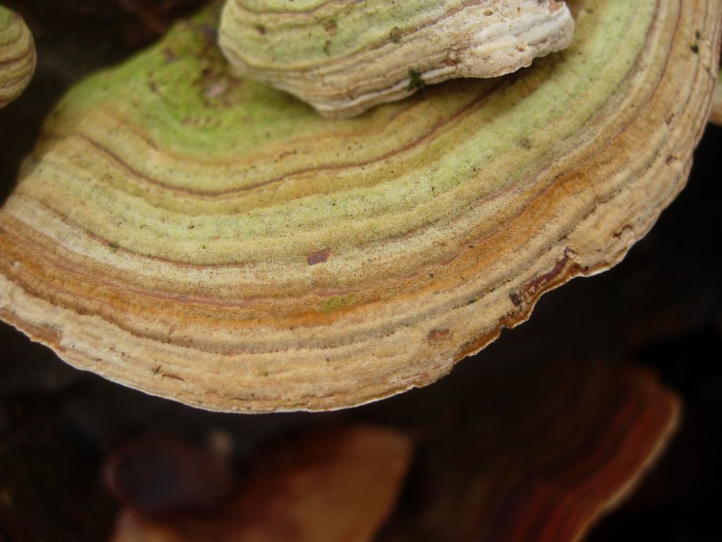 Z.B. habe ich immer noch nicht wirklich in Erfahrung bringen können, ob der Prächtige Schichtpilz (Stereum ostrea) denn frisch auch gelb anläuft wie Stereum subtomentosum (Samtiger Schichtpilz). Wenn nicht, wäre das natürlich genial.