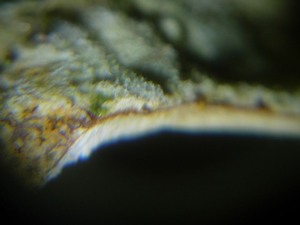 die Geschichte mit der schwarze Linie hat mich neugierig gemacht, und da ich Heute mal ein paar Exemplare von Stereum subtomentosum finden konnte habe ich mir was nach hause mit genommen um mal genau zu schauen, hier ein paar Bilder, nicht besonders schön aber besser geht nicht.
