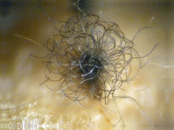Perithecium sehr dicht und deutlich dunkelgrün oder bläulichgrün behaart. Haare lang, oft Korkenzieherartig verdreht.