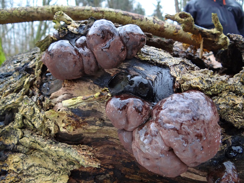 Nach dem ersten Regenguss, vor dem wir uns noch gut unterstellen konnten, stießen wir auf gigantische, teils faustgroße, Kohlenkugelpilze (Daldinia concentrica) die, so unspektakulär sie von außen aussehen ein fantastisches Innenleben haben: