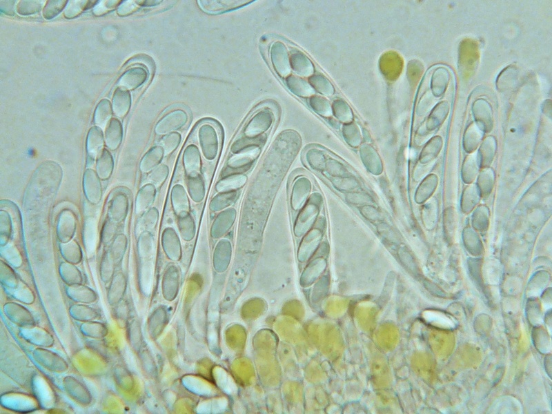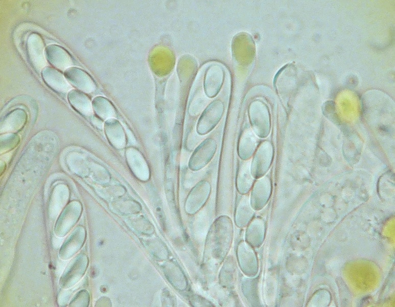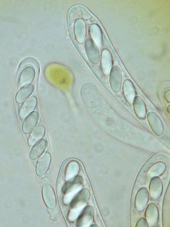 Mikroskopisch ist die Art leicht an den grüngelben, stark verdickten Paraphysenköpfen zu erkennen.