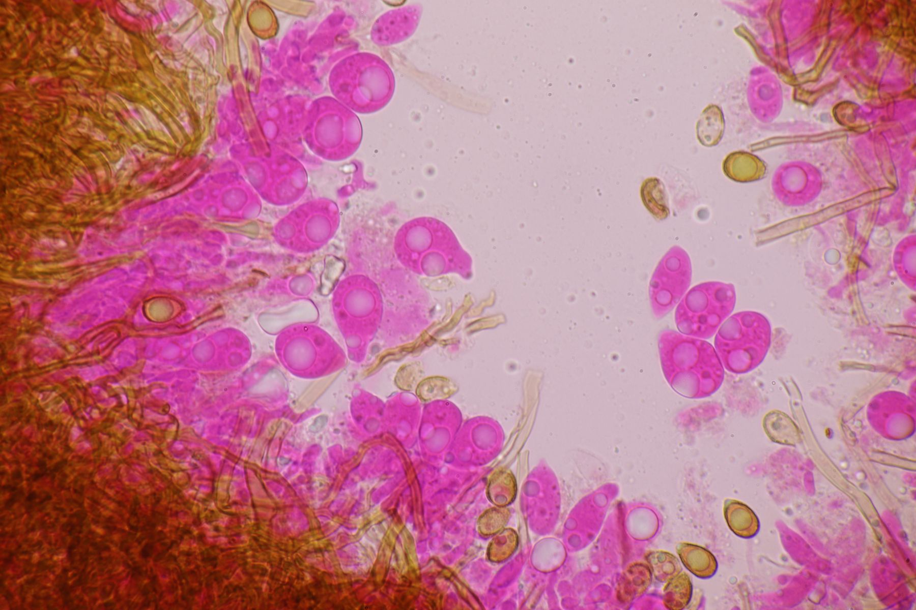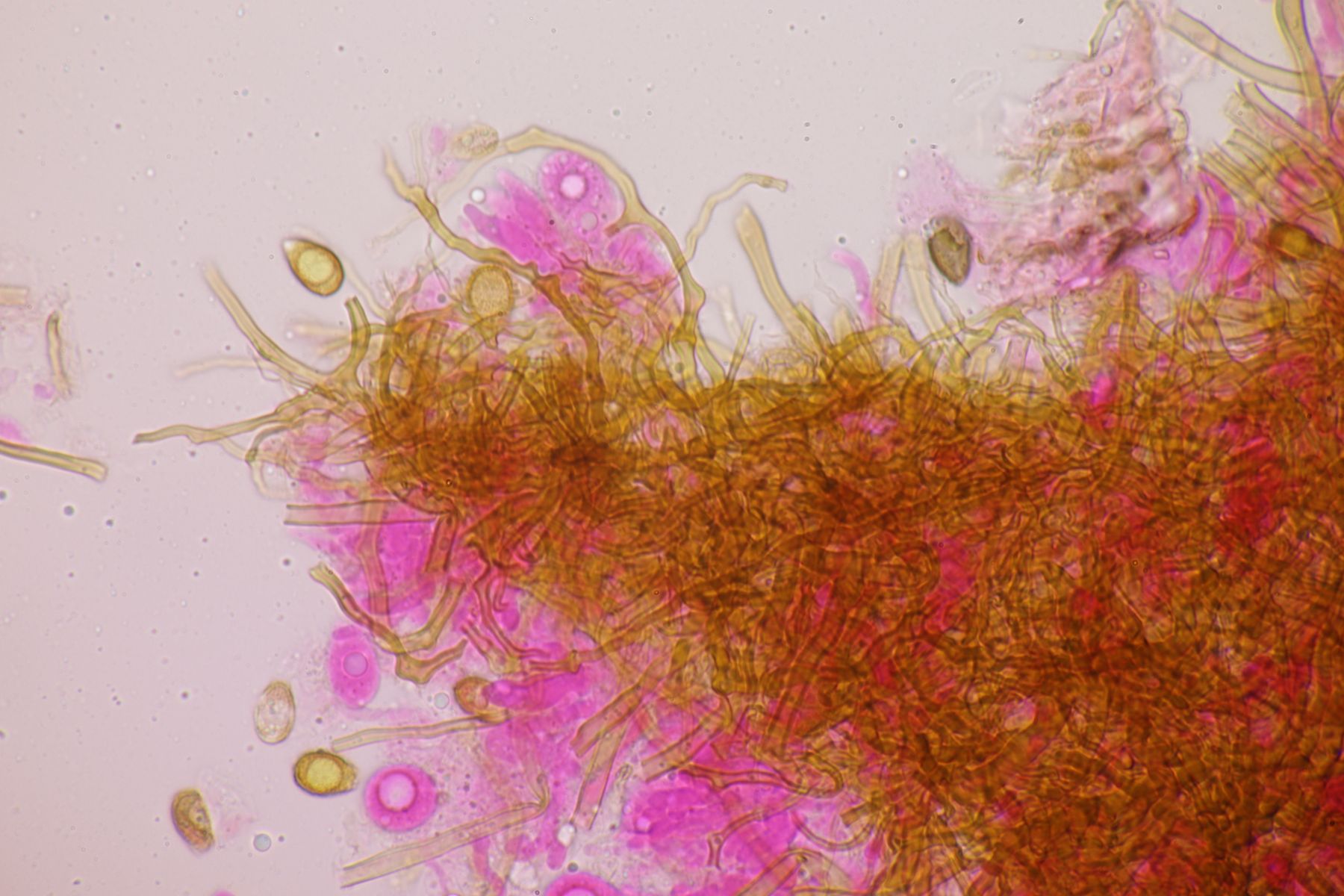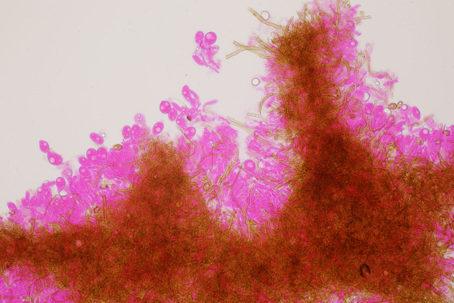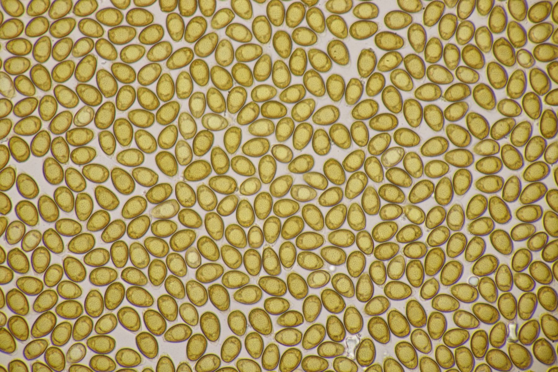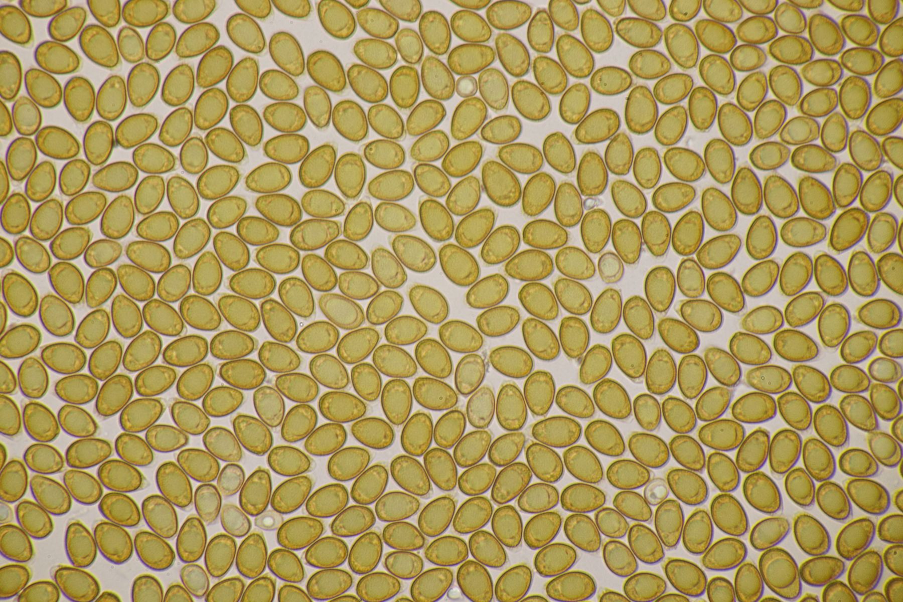 Sporenpulver: braun; Sporen doppelwandig: Außenwand glatt, dünn, hyalin; Innenwand braun, warzig-stachelig; mit dem Exospor durch feine (unsichtbare) Palisaden verbunden