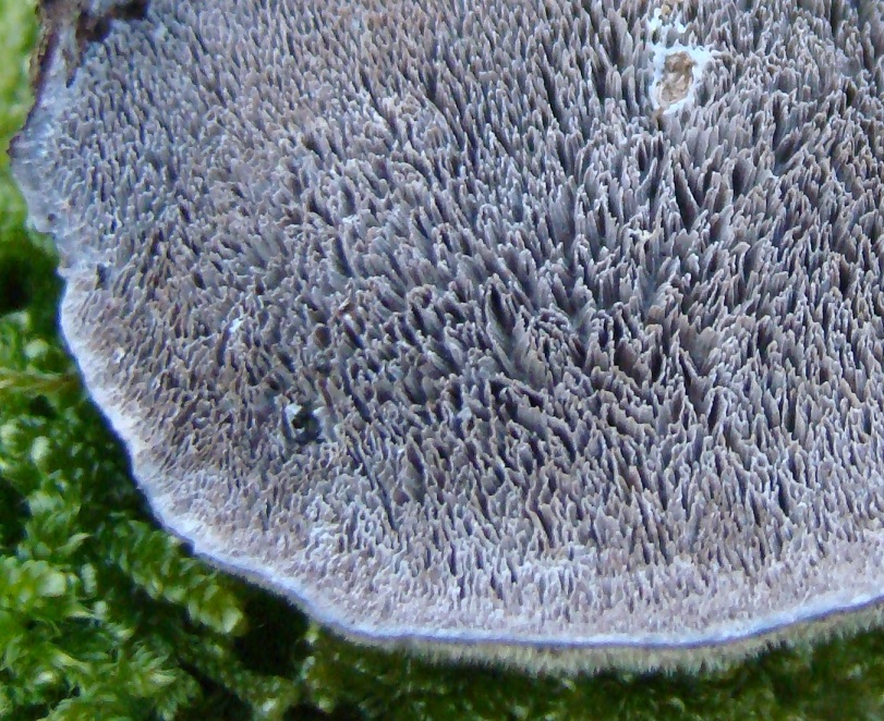 Einen effus - reflexen Pilz mit weiß behaartzer Hutoberseite, einer dunklen Schicht unter dem Hutfilz und grauem Hymenium mit länglichen bis labyrintischen Poren, die oft auch irpicoid aufgespalten sind. :thumbup: