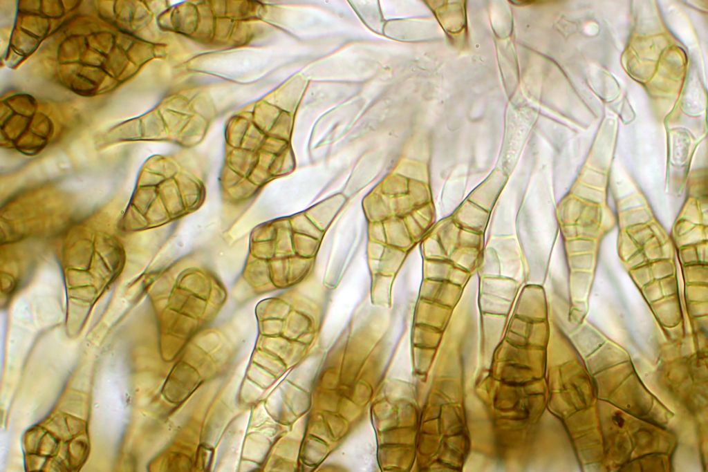 Zur mikroskopischen Absicherung reicht auch locker schon 400-fache Vergrößerung oder noch weniger aus, Phragmotrichum chailletii ist da unverkennbar. Mit etwas Erfahrung kann man den auch schon makroskopisch recht zuverlässig vorbestimmen.