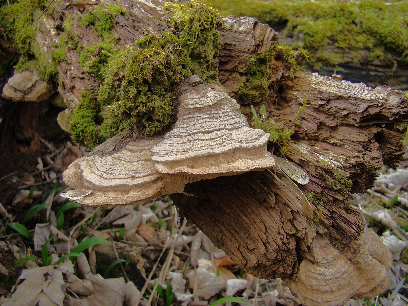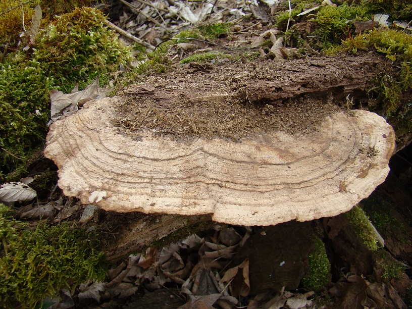 2 - dieser hier wohl an liegendem Acer-Stamm (bin aber bei Totholz nicht wirklich gut), z.T. ziemlich große Teile, > 20 cm: