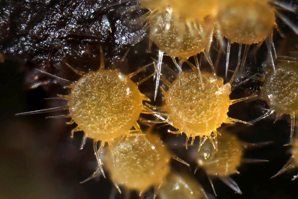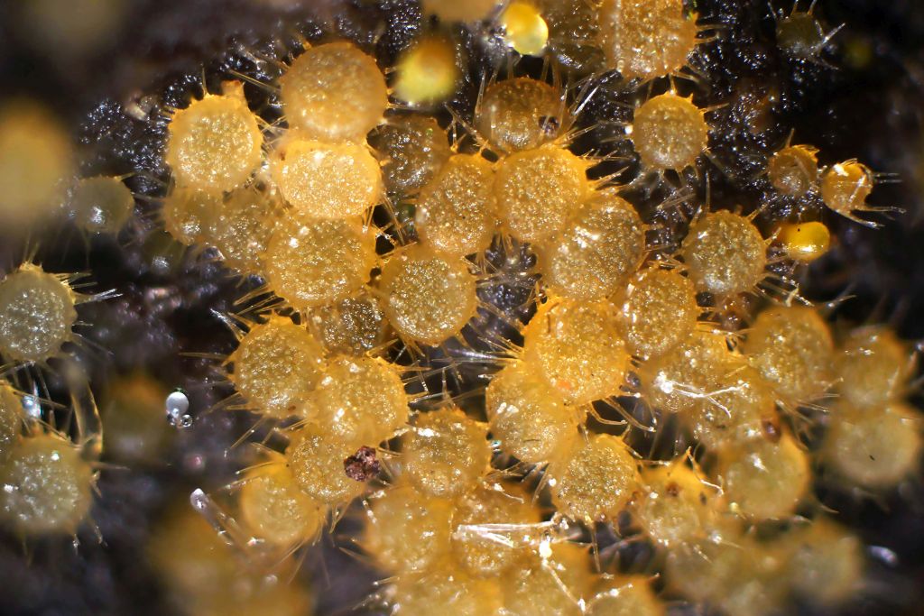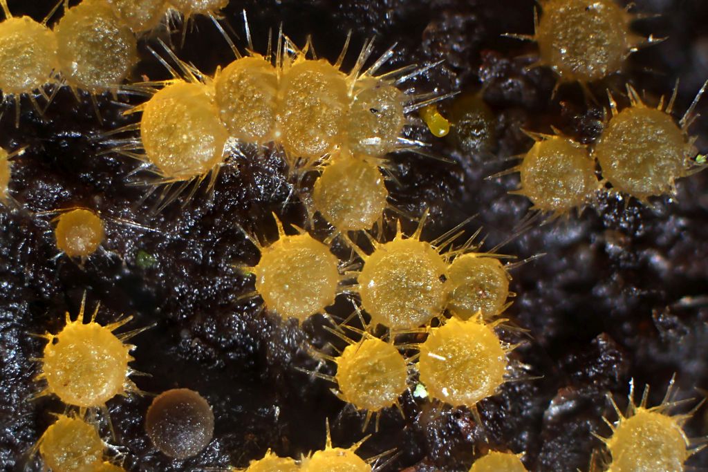 auf einigen Wildschwein-Hinterlassenschaften waren heute sehr zahlreiche gelbe Pünktchen zu sehen. Zum Teil haben die Köttel eine fast ganz gelbe Oberfläche, so dicht wachsen die Lasiobolus.