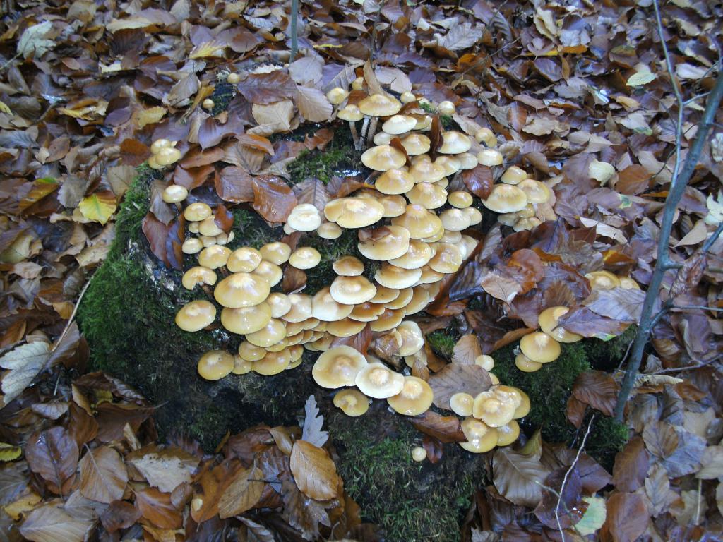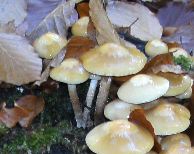 eigentlich war ich gestern auf der Suche nach Steinis und Parasolen, diesbezüglich sah es aber eher mau aus: Nur ein halbes Dutzend Parasole und ein alter Steinpilz, dafür aber ein paar andere interessante Funde. Zum einen, auf Nadelholz (Tanne) junge Austernseitlinge, dann auf einem anderen Baumstumpf saftige Stockschwämmchen oder zumindest das, was ich dafür halte ;-). Der Stil war braun und schuppig unter der Manschette, darüber hell und der Geruch angenehm pilzig. Trotzdem habe ich sie nicht gesammelt, weil ich noch nicht den direkten Vergleich mit dem Gifthäubling hatte. Leider, denn sie sahen wirklich soooo saftig aus ![]()