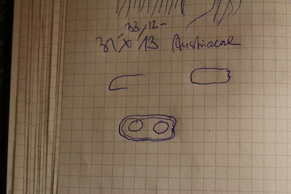 Hallo, vor einiger Zeit noch stolz meine ersten Scharlachroten Kelchbecherlinge präsentiert, entpuppten sich diese bei der Auswertung der Sporenbilder als mutmaßliche Jura-Kelchbecherlinge. Zumindest brachten mich zu dieser Annahme die beiden großen Öltropfen an den Sporenenden. Aber in einem Erlenbestand??? Ok, Zeit für einen Sonntagsausflug. In dem Wäldchen angekommen begrüßten mich ein paar letzte Fruchtkörper inmitten von Erlenfrüchten und -blättern. Bei genauerem Hinsehen lagen da aber noch diese spitz zulaufenden, herzförmigen Lindenblätter vereinzelt darunter, also müssen tatsächlich noch einige Linden untermischt sein. Auf welchem Substrat die dort noch vorhandenen Fruchtkörper wuchsen, kann ich nicht sagen. Für mich ist es unmöglich die Zweige den Bäumen zuzuordnen.