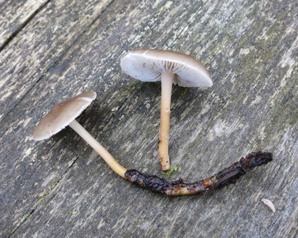 Stiel: ca. 5 x 0,15 cm mit Wurzeln, unter den Lamellen helle Zone, dann langsam fleischfarben bis ins Orange übergehend. Hohl, längsfaserig.