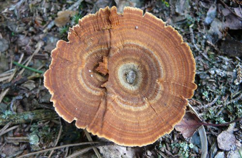 3.: Gebänderter Dauerporling (Coltricia perennis);