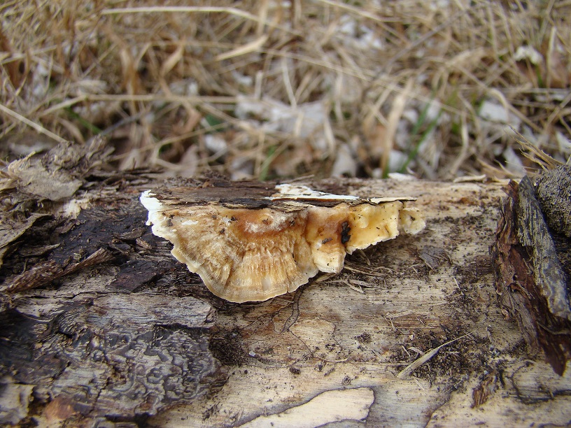 Nr. 1 - an Carpinus. Wächst hier zusammen mit Bjerkandera adusta. Insbesondere die relativ dicke breite Anwuchskante ist hier gut zu sehen:
