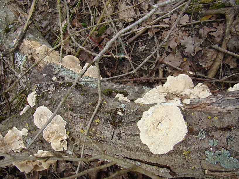 hier ein weiterer Fund noch vom 15.03. aus der Hördter Rhein-Aue am Michelsbach. Die Pilze wuchsen meist völlig resupinat auf dicken Ästen einer gestürzten Pappel. Bei einigen war dann doch auch noch ein wenig Hutoberseite zu finden.