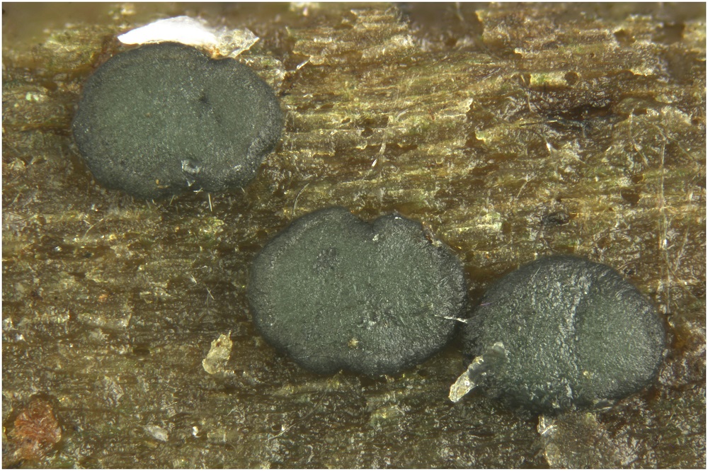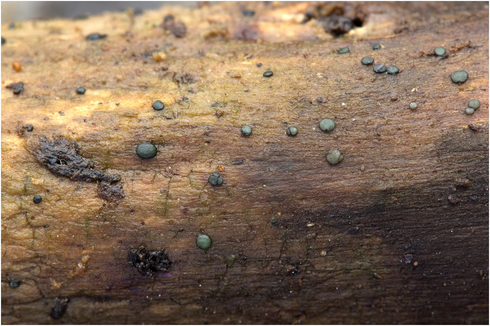 hier ist noch ein Fund vom 29.02.2020 an Pappelholz mit Olivgrünen Fruchtkörpern.