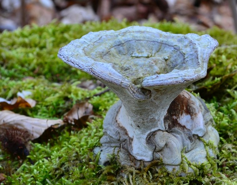deutlich in Hut und Stiel gegliedert, der Hut ist trichterig und zentral gestielt mit herablaufenden Poren und auch nur etwa 8cm im Durchmesser. Der Wuchsort - alter vermoderter Stubben- spricht wohl auch nicht für Zunderschwamm.