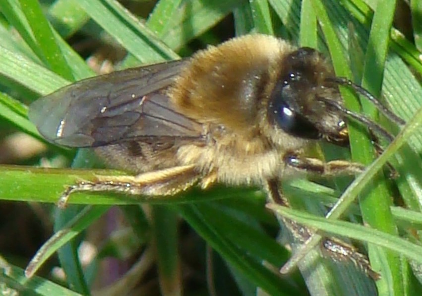Und dann noch schon am Ackerrand ca. 40 Erdbienen, ziemlich kleine wuselige Gesellen, nur knapp über 1 cm - aber auf ein paar der gefühlt 50 Bildern war dann wirklich was drauf: