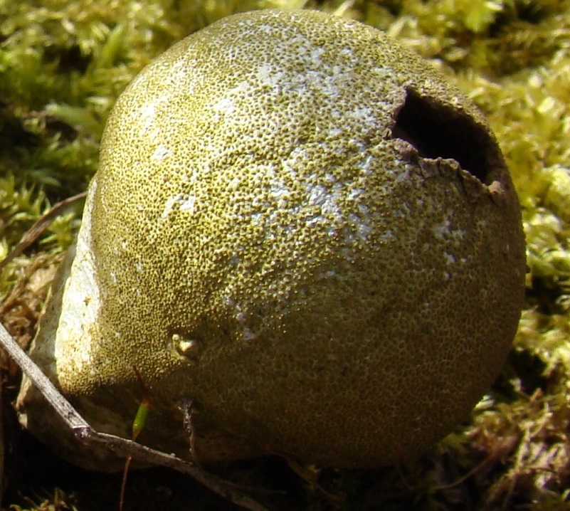 Und noch älter und ganz staubig - Birnenstäubling (Lycoperdon pyriforme) auf liegenden Fagus-Stämmen: