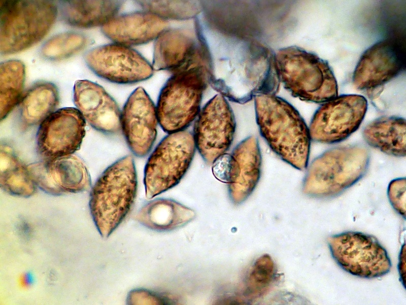 Unter dem Mikro gab es keine Merkmale von einem Basidiomyceten oder einem Ascomyceten, dafür aber diese Teile die auch im Fleisch Massenweise vorhanden waren.