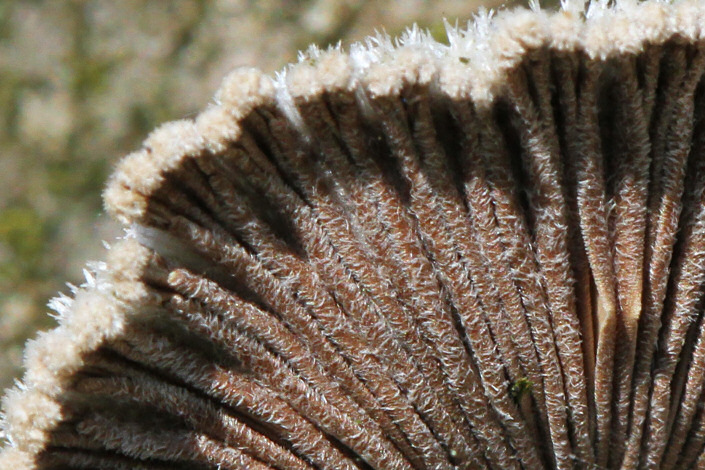 ich habe an einem toten Baumstamm viele kleine Pilze (die meisten unter 2 cm) gefunden und hoffe,