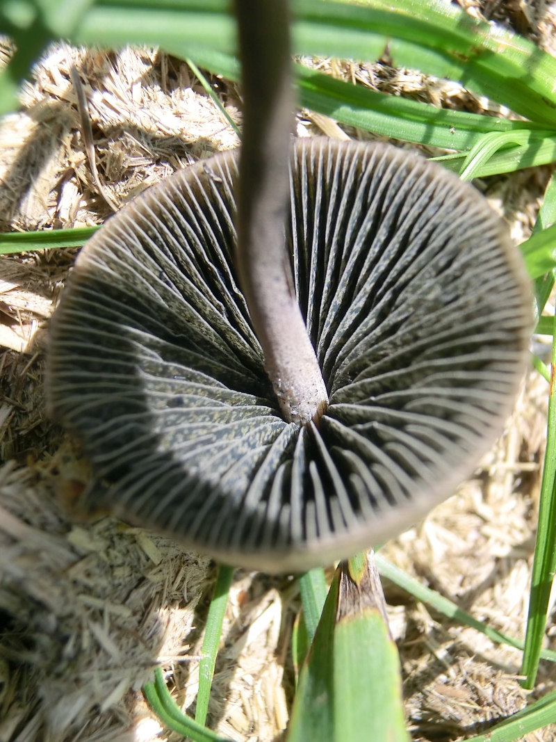 hatte dieser Pilz, den ich heute auf Dung/altem, trockenem Gras am Wegesrand gesehen habe.