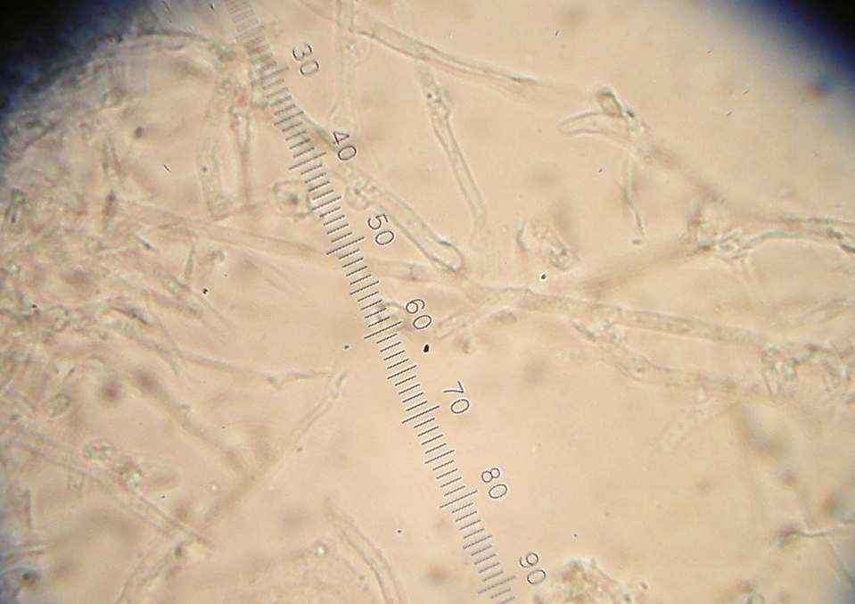 Mikroskopische Eckdaten: Monomitisch, Hyphen hyalin, dünnwandig, Schnallen vorhanden;