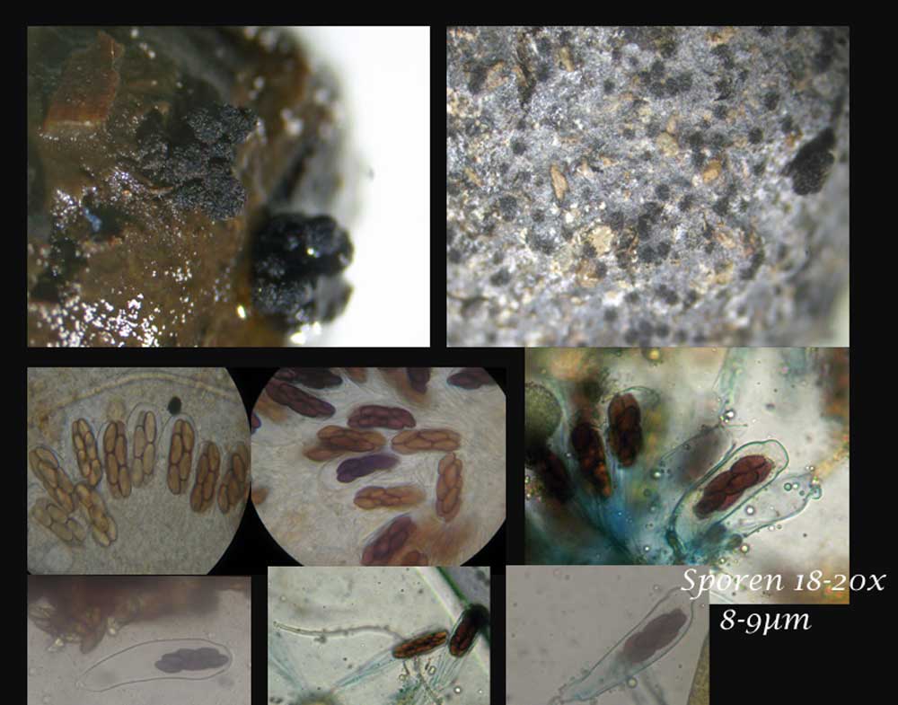 leider sind die Fotos als Collage nicht so gut geeignet um eine Bestimmung vorzunehmen. Größere Einzelbilder wären besser. Außerdem wären die Maße von Cluster und Asci hilfreich.