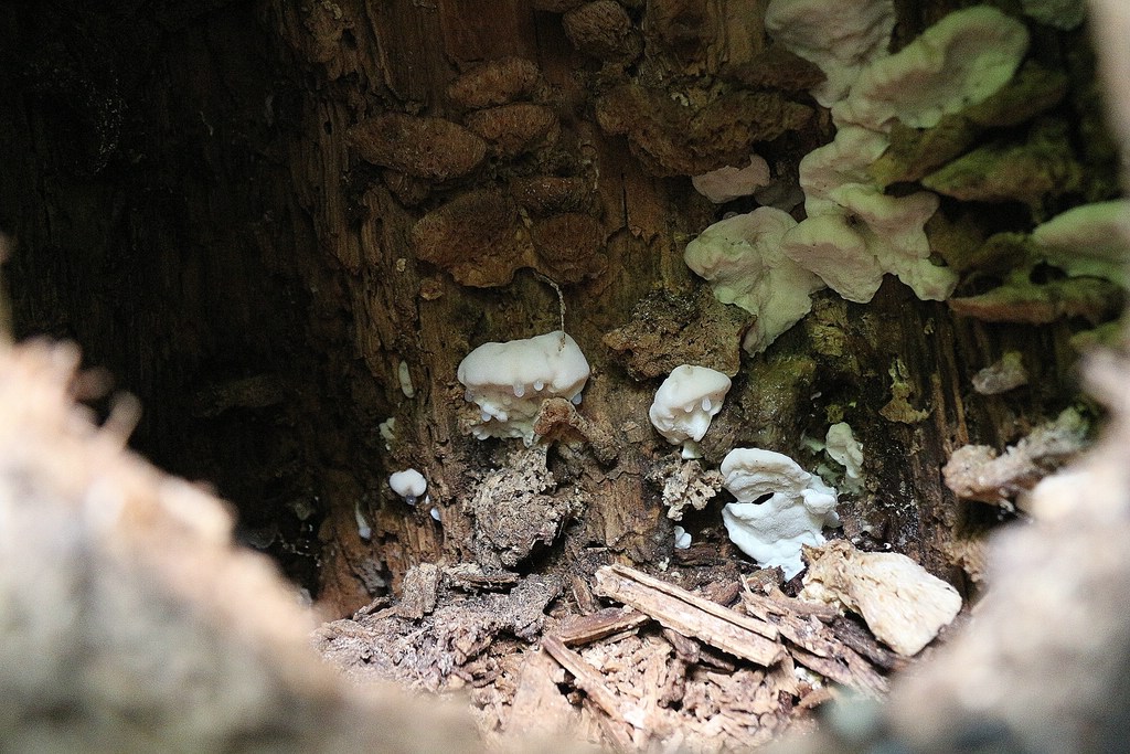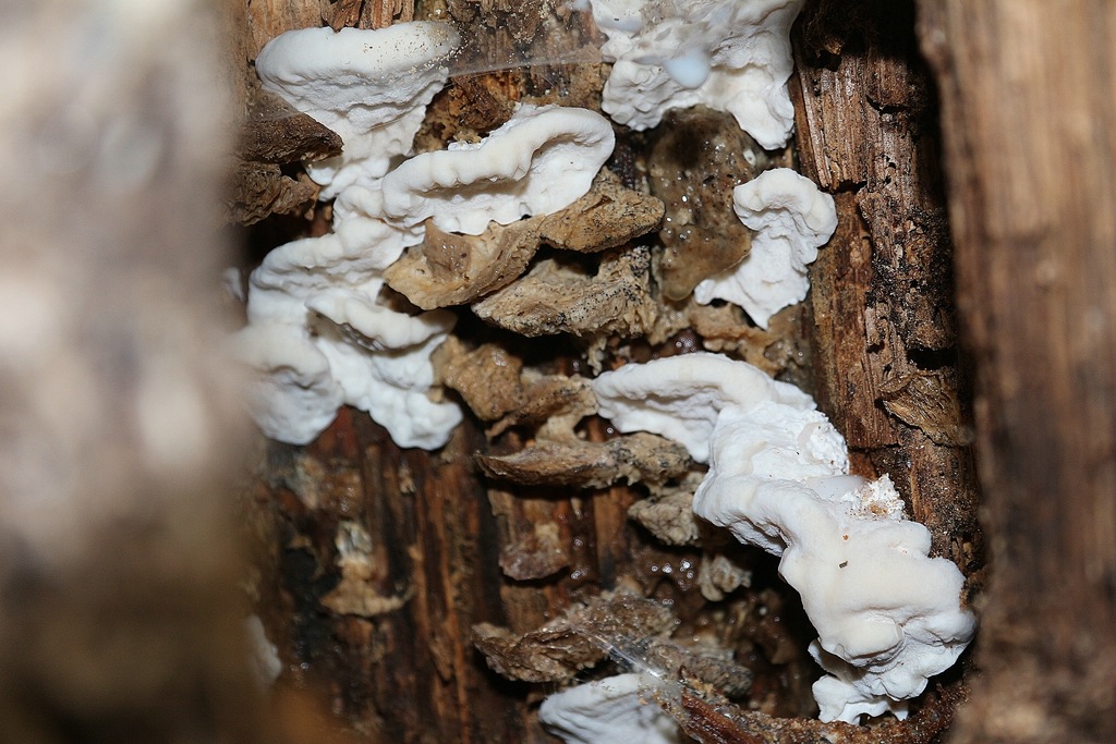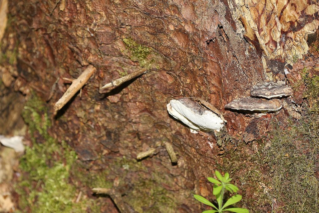 • An dem Saftporling, sehe ich da Tropfen? Substrat = Nadelhoilzstumpf?