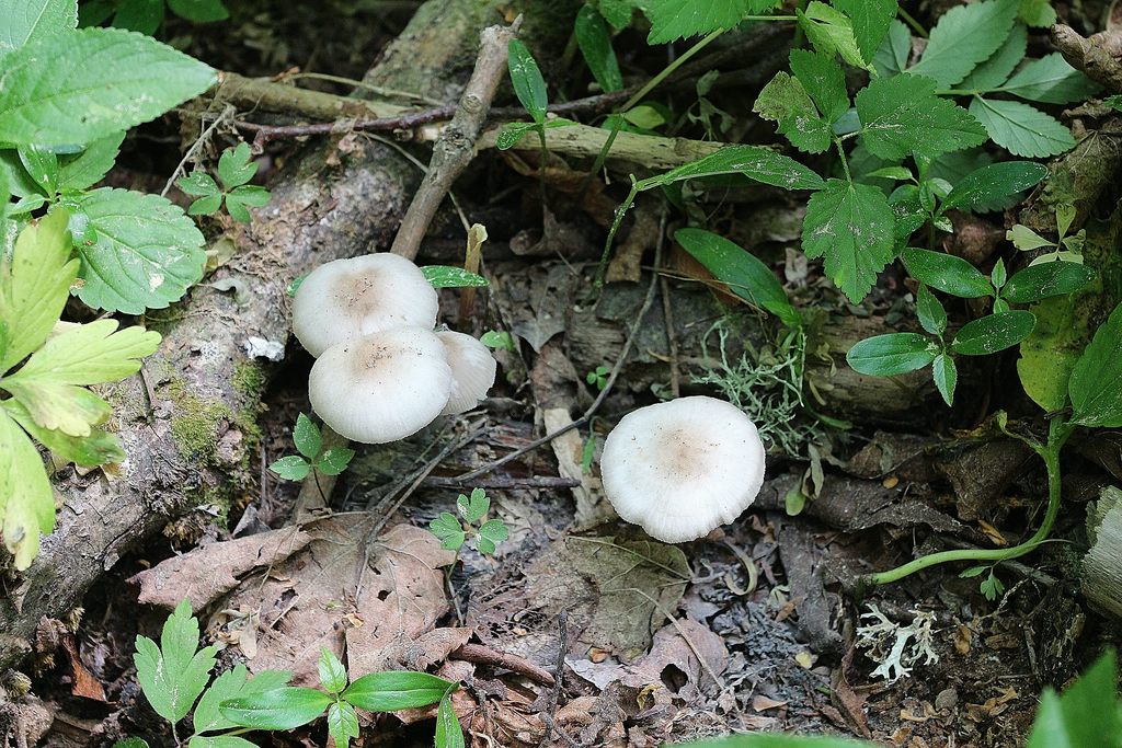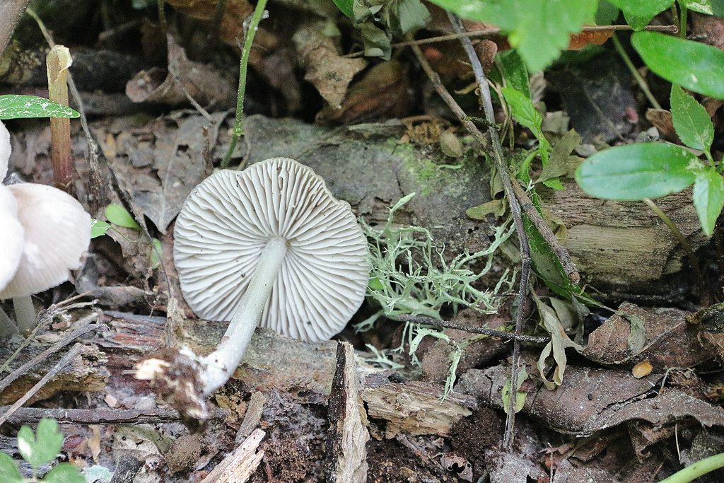 Beim Helmling halte ich mich zurück. Aber mit so einer flachen Hutform: Zerreib den mal in der Hand, ob's nach rettich riecht. Mycena pura kann ausgebleicht so aussehen. Und riecht wenn trocken kaum. Ist zwar eher eine Art des Spätsommers / Herbstes, aber auf Erscheinungszeiten baut man keine Bestimmung auf.