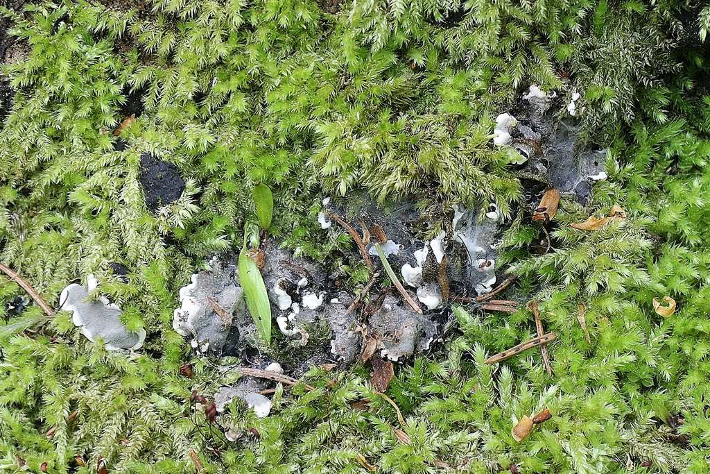 Gegen eine Flechte sprechen die fehlenden Rhizinen, die waren auch auf moosigem Untergrund