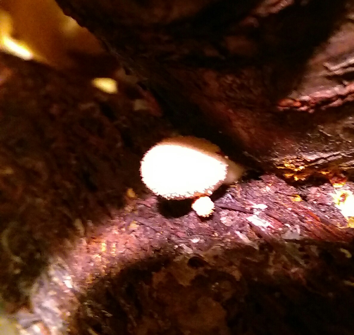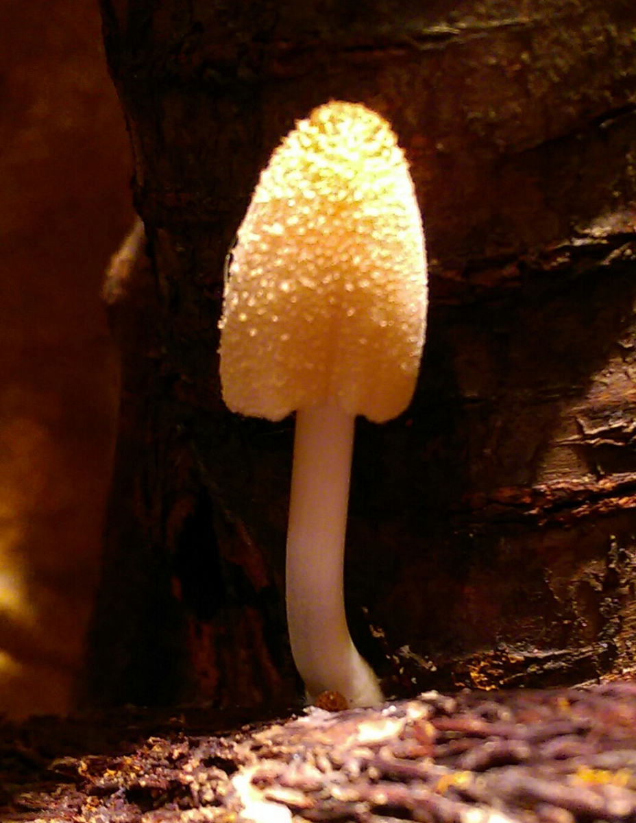 Und weil Feiertag ist, darf ich eine Hypothese aufstellen. Nach dem jüngsten Foto zu urteilen, ist der Pilz wohl ein Tintling. Jung gelblich, dicht von Velum (Hutkrümel) bedeckt, und in "tropischer Umgebung" könnte das durchaus Coprinellus aureogranulatus sein. Heimat: Papua New Guinea (kommen Tokehs nicht auch in dieser Ecke vor?)