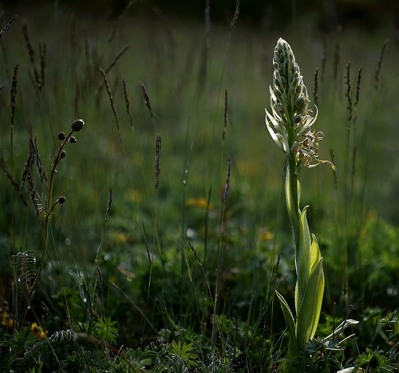 Dort findet man in der geeigneten Jahreszeit, also wenn im Moos nix los ist, Ragwurze, die auch Kerfstendel genannt werden. Es handelt sich um eine Orchideengattung, die mit fünf Arten (+1 Subspecies) in Deutschland vertreten ist, und sie alle kommen im Raum Würzburg vor. Meines Wissens allein vier davon auf der Höhfeldplatte, die auch sonst noch einiges zu bieten hat.