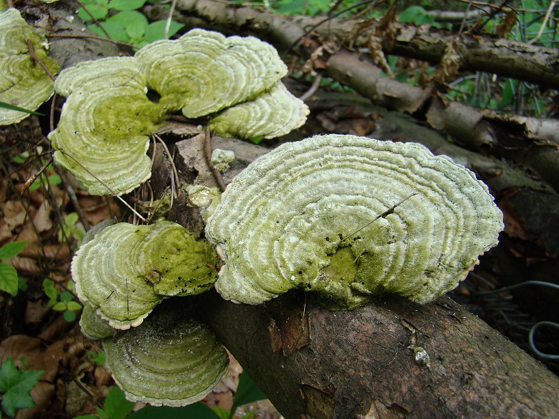 1. diese hier wohl sehr typisch Trametes hirsuta: