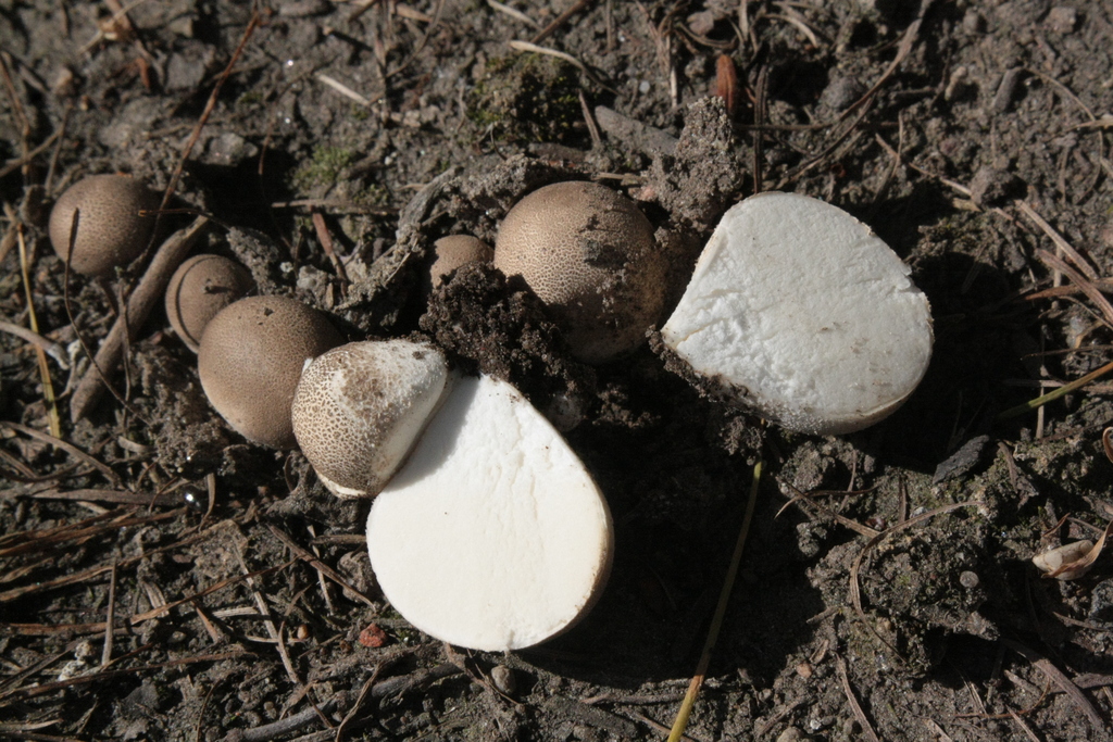 Mittlerweile meine ich sagen zu können, das sollte der Hain-Bovist, Bovista polymorpha sein.
