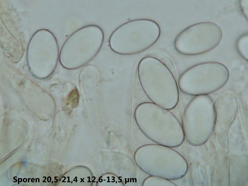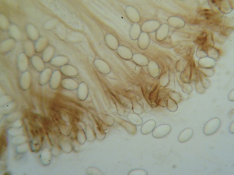 Die Paraphysenspitzen sind braun gefärbt, die Sporen glatt und die Randhyphen farblos.