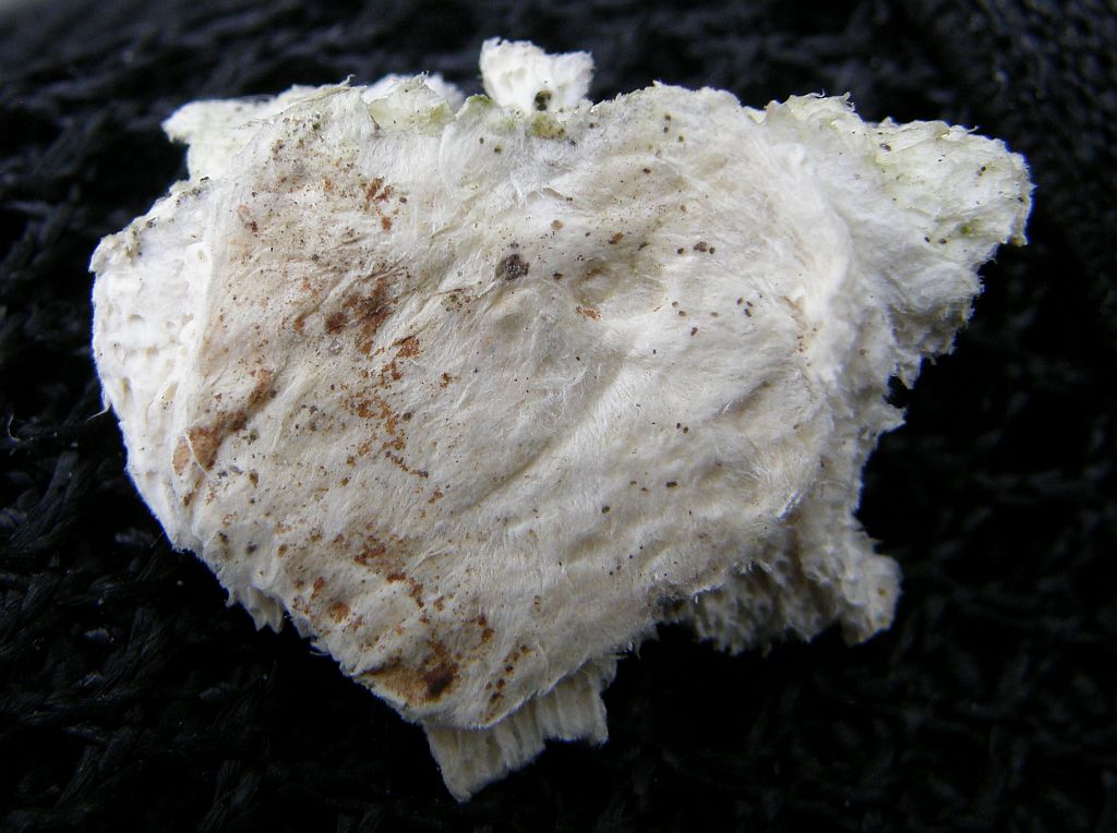 Die Fruchtkörper sind auch in dem verwitterten Zustand rein weiß, gilben und bräunen nicht, sind nur etwas von Algen bewachsen.