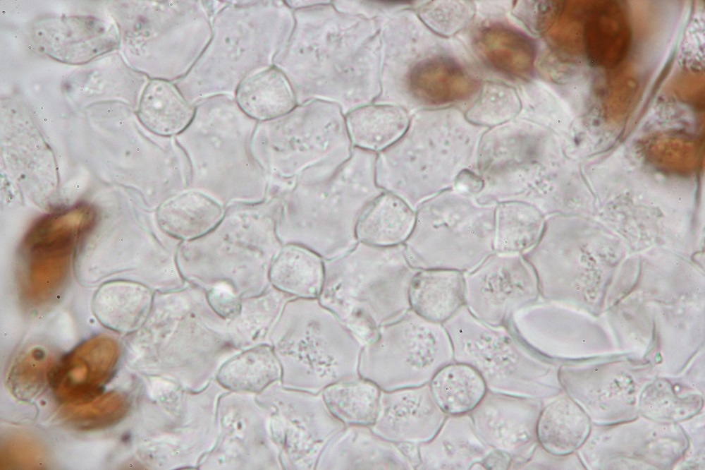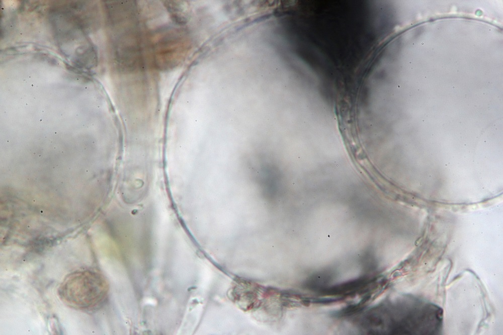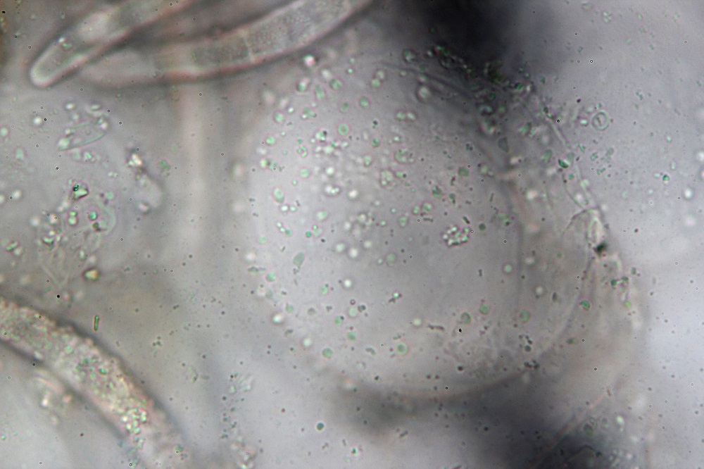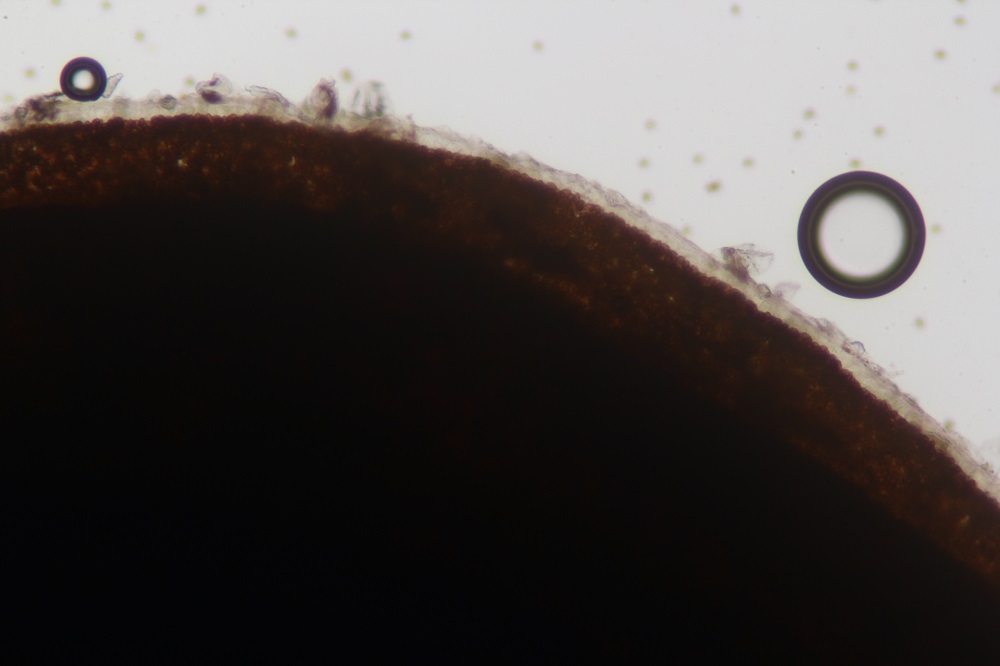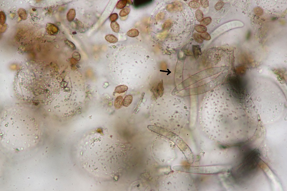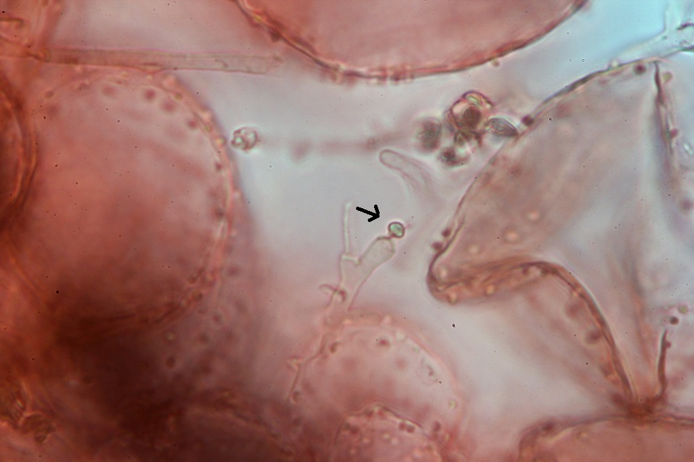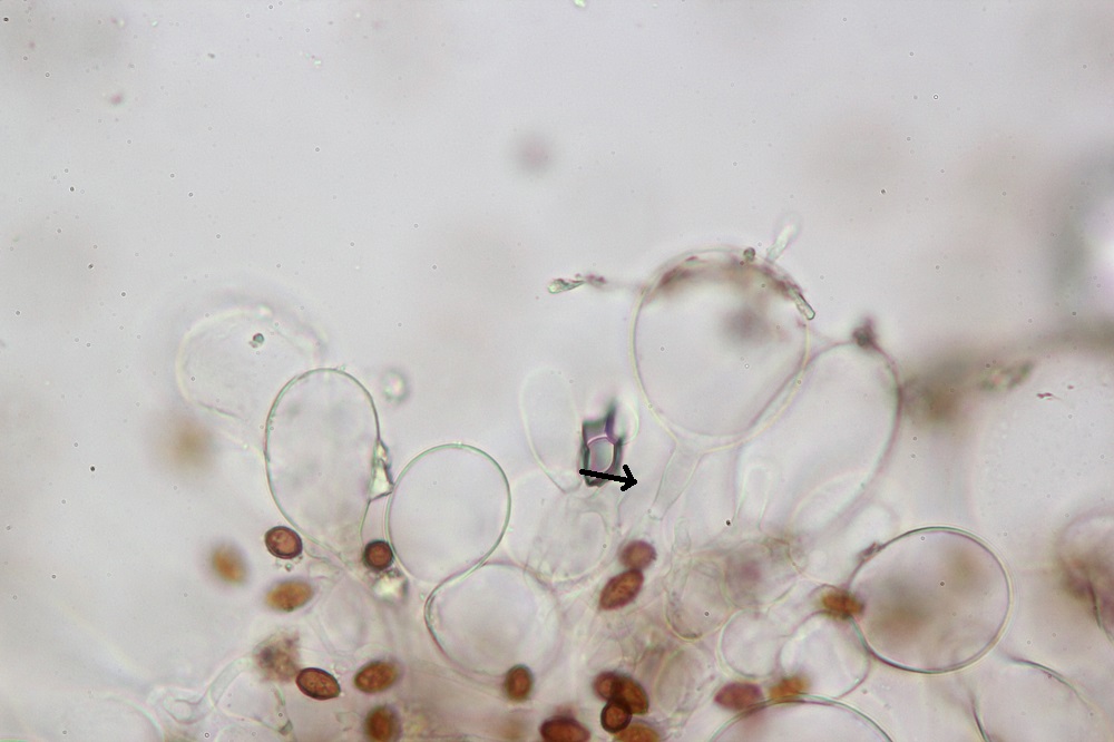 Zum einem weil ich die warzigen Velumzellen zum ersten mal gesehen habe und zum anderen weil viele Sporen an den Warzen klebten und ich keine Basidien gefunden habe.