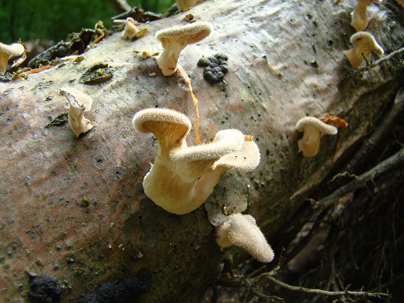 dies ist der zweite Versuch für diese Art - beim ersten Mal ganz zu Anfang lag ich noch völlig daneben, das entpuppte sich als Panellus stipticus (den kenne ich inzwischen auch) - ich hoffe aber diesmal besser zu liegen. Gefunden am 10.05. im Buchenmischwald mehrfach und auf verschiedenen Substraten (Fagus, Acer). Allerdings fehlen mir doch die im Portrait angesprochenen rötlichen oder violetten Töne völlig - wobei ich auf den Bildern dort die auch eher nur erahne.