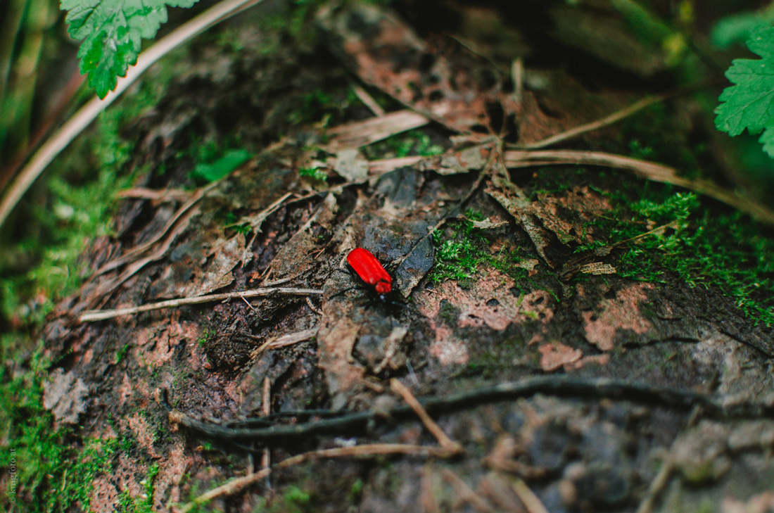 10. Ein schönes, kleines Käferlein. Wahrscheinlich ein scharlachroter Feuerkäfer Pyrochroa coccinea Leider den Fokus schlecht gesetzt. ;(