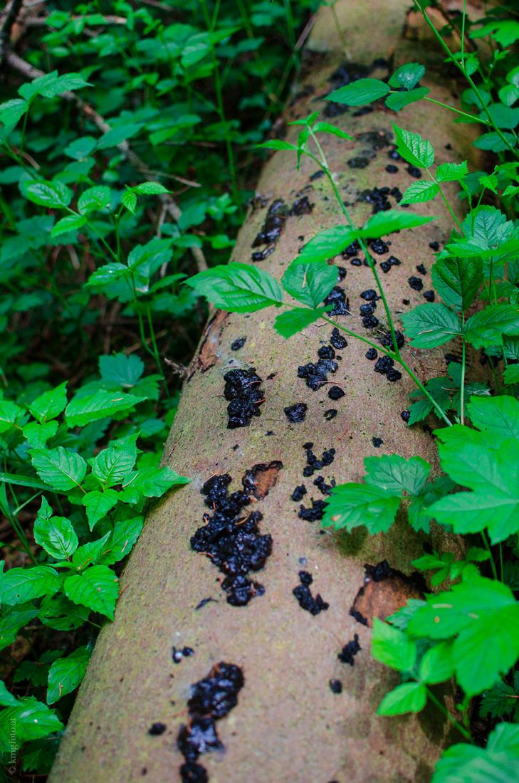 Ich glaube, Exidia pithya ist recht stark an Nadelholz gebunden. Exidia nigricans (= Exidia plana) kommt allerdings auch an Nadelholz vor (ist halt insgesamt viel häufiger).
