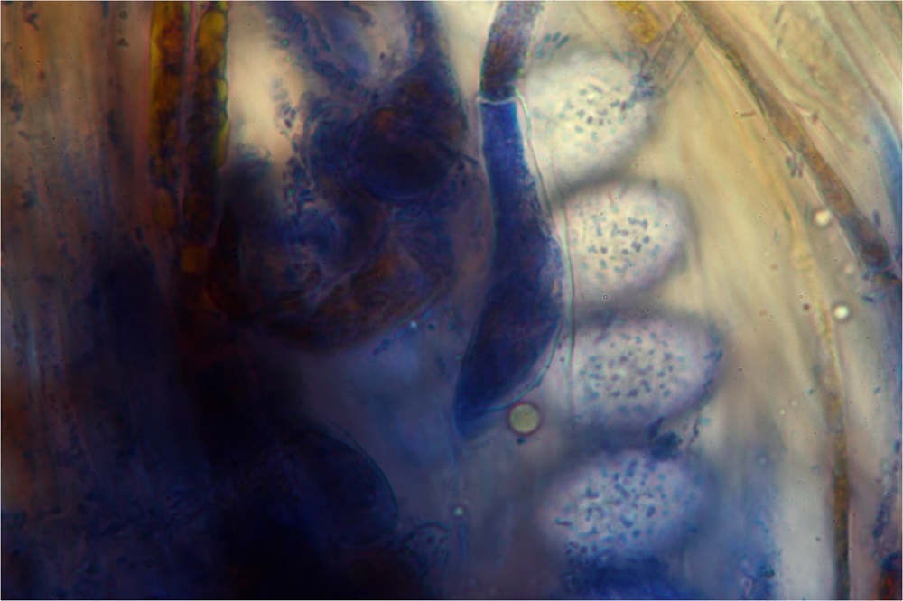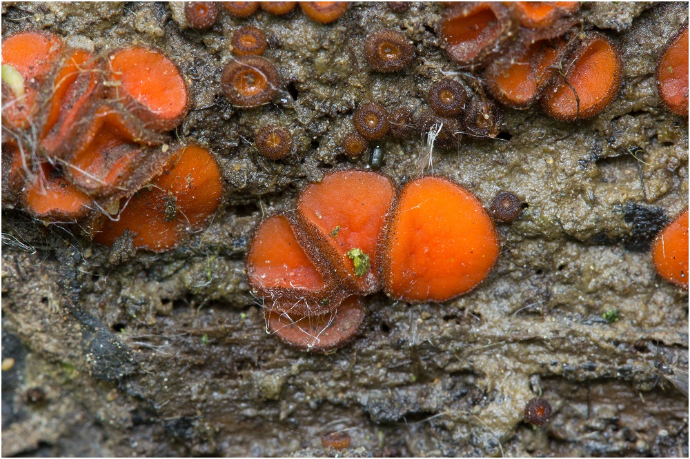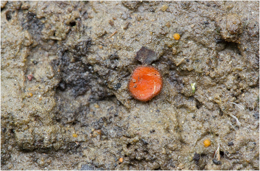 Am 3.6.15 fand ich eine Scutellinia an einem Baumstamm (vermutlich Erle) der im Bach im Wasser lag und habe die Scutellinia mal mitgenommen.