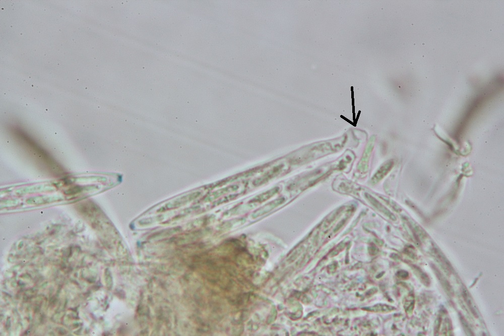 Die Ascus Spitze hat eine Blaue Verfärbung und das worauf der Pfeil zeigt das ist doch kein Haken oder ?