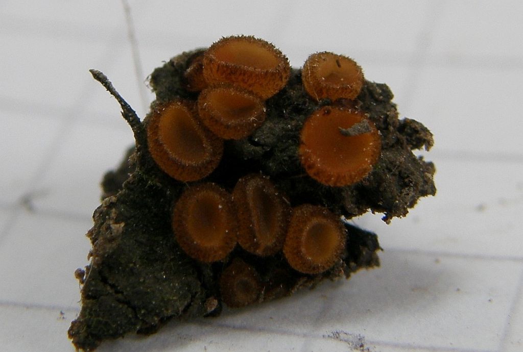 das sieht schon sehr nach S. minutella aus. Von der ähnlichen S.torrentis unerscheidet sich diese Art durch die kleineren Sporen, die Anzahl der Septierungen der Haare und deren Wurzeln. Die Größe und Farbe der Apothecien ist kein sicheres Merkmal. Das Sporenornament bei S.minutella zeigt zudem fast ausschließlich zusammenfließende Warzen und Grate. Bei S.torrentis kommt öfter auch ein Ornament aus eher einzeln stehenden Warzen vor.