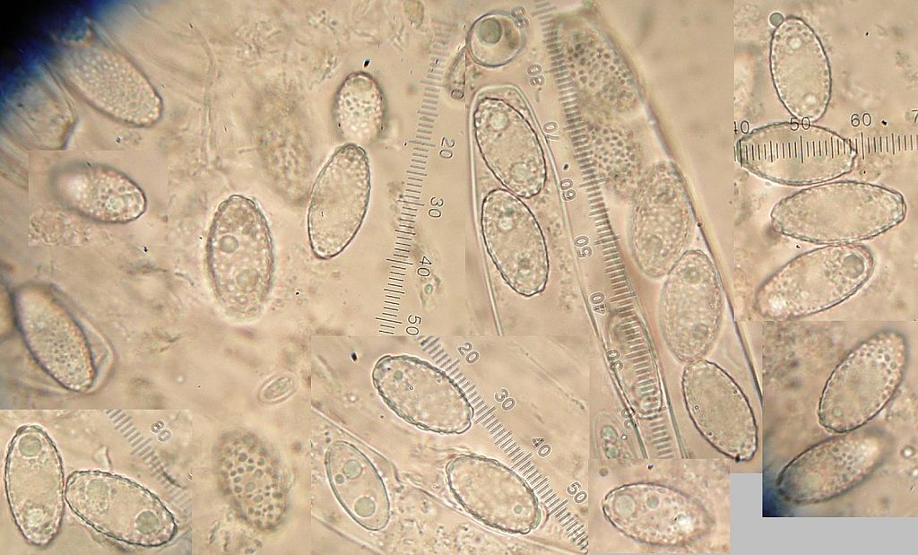Die Sporen sind ellipsoid bis fast spindelig, recht schlank aber variabel; 17-22,5 x 7-10 µm; das Ornament besteht aus isolierten Warzen von unterschiedlicher Größe (aber immer rundlich und ohne Verbindungen), an den Polen sind die Warzen stärker gehäuft und teils größer: