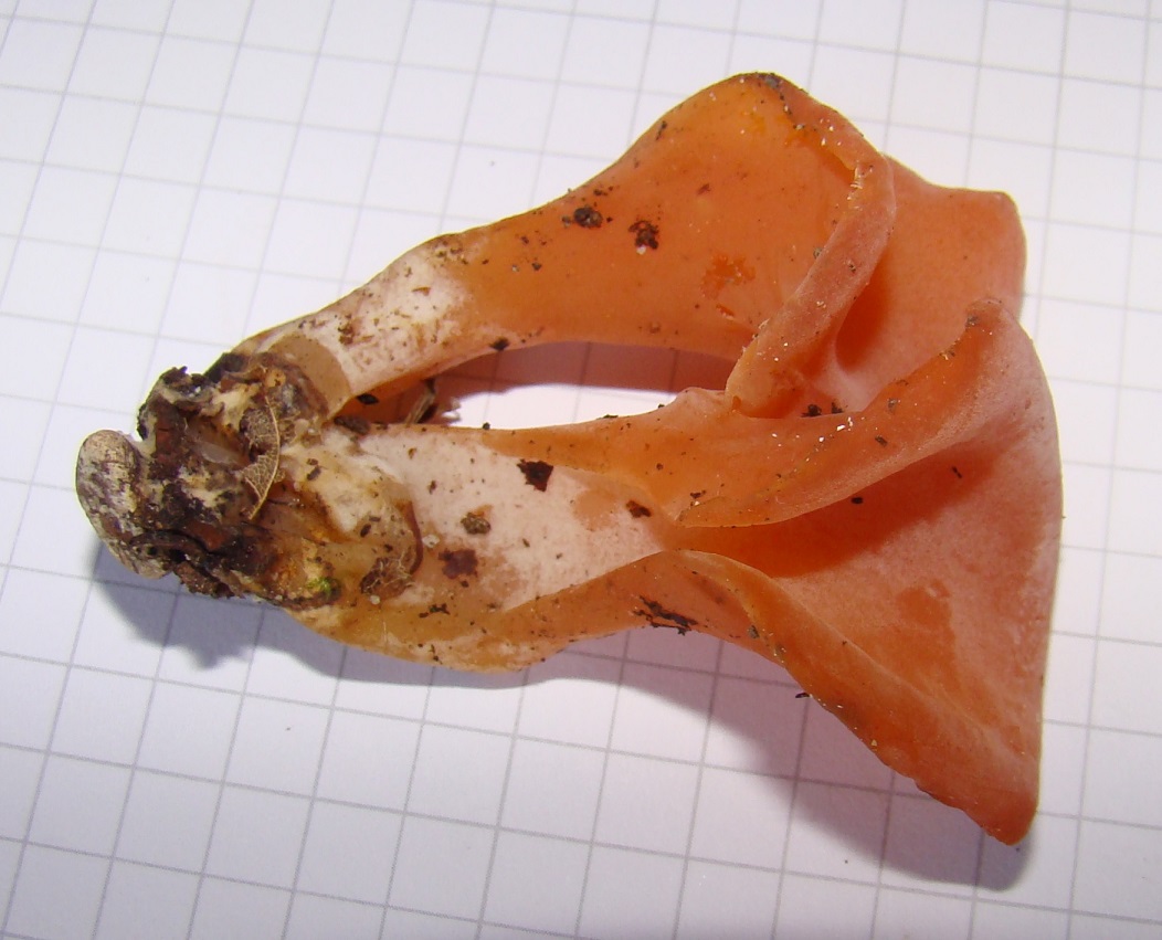 Nun sieht der aber für mich weder wie Sp. flavida aus (lange nicht gelb genug, der hier ist wirklich eher orange-bräunlich) noch wie Sp. neesii - außerdem ist insbesondere bei letzterem der FK wirklich in Stiel und Hut gegliedert - nicht wie bei mir irgendwie ineinander übergehend.