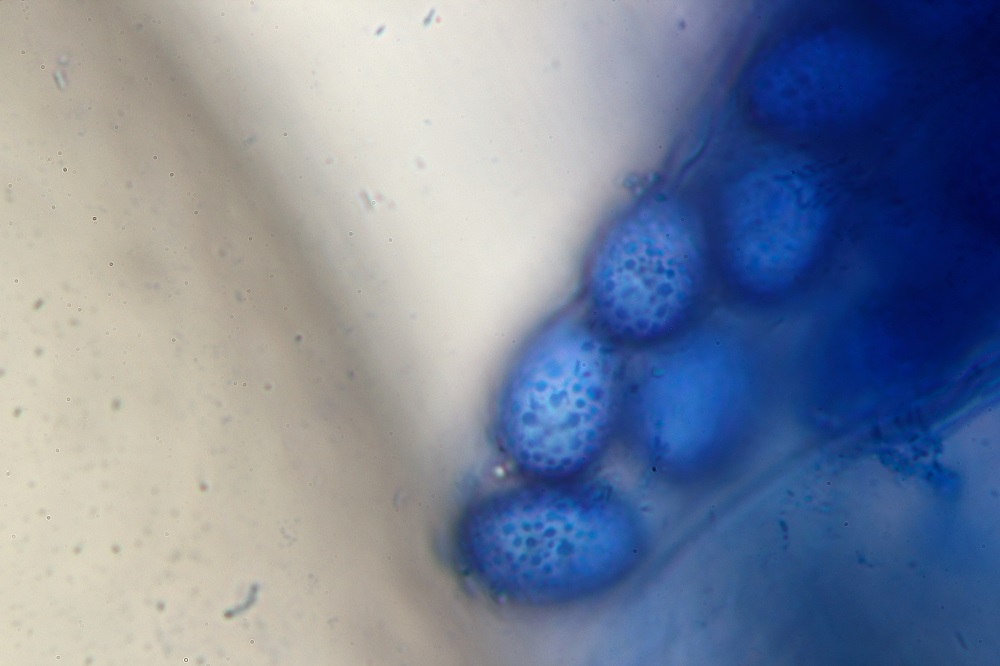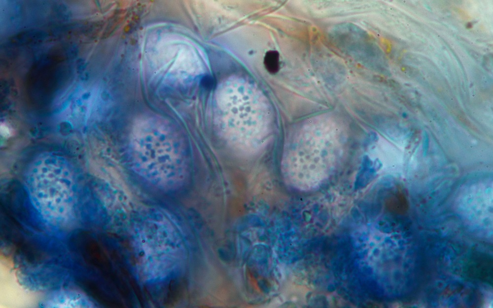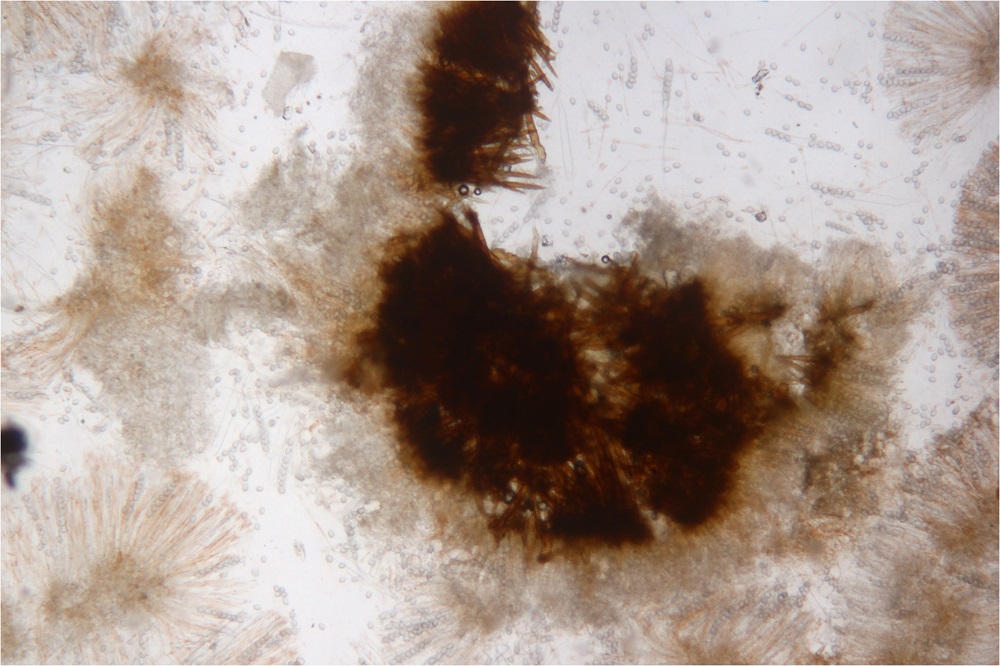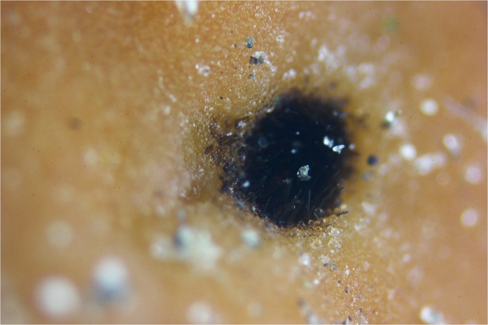 Linker Fruchtkörper unten ebenfalls Büschelbildung der Haare.