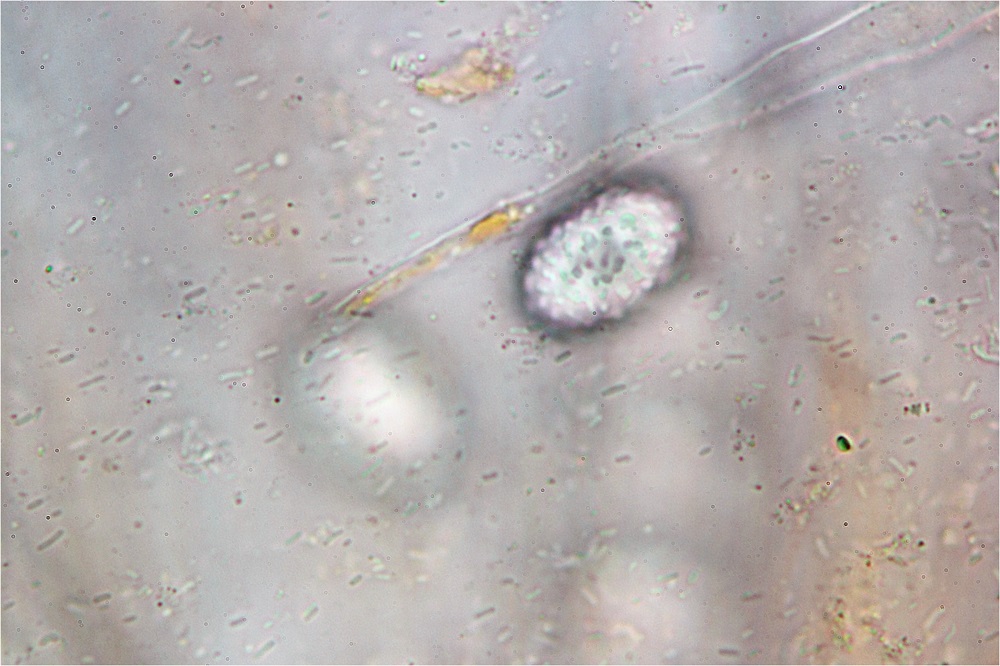 Bei den größeren Haaren war eine 3-mehrfache Verzweigung zu sehen. Selten doppelte Verzweigung.