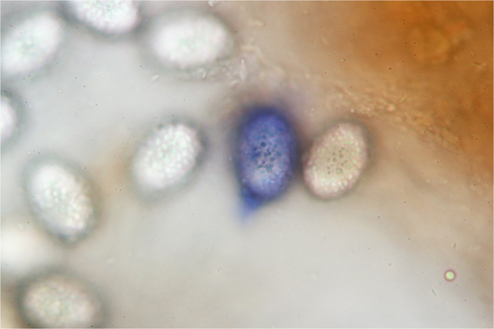 Sporenornament ist im Wasser schon ohne Baumwollblau deutlich zu erkennen auch am Außenrand (siehe Bild Nr.9)